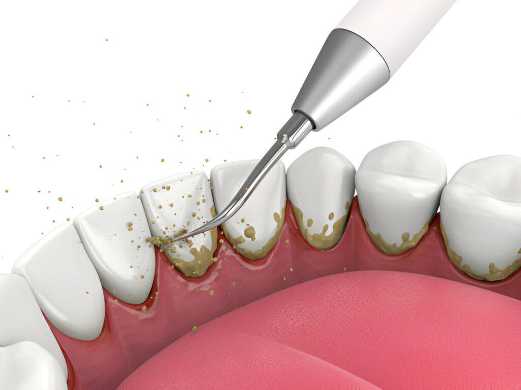 Specialized instruments are used to remove plaque and hardened tartar, followed by polishing to eliminate surface stains and smooth the enamel.
